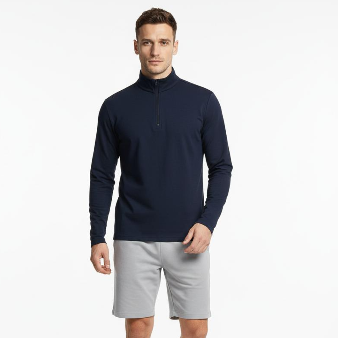 ROYAL BLUE HALF ZIPPER MOCK NECK