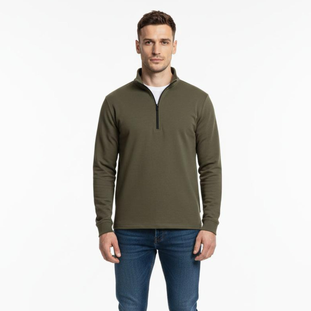 OLIVE GREEN HALF ZIPPER MOCK NECK