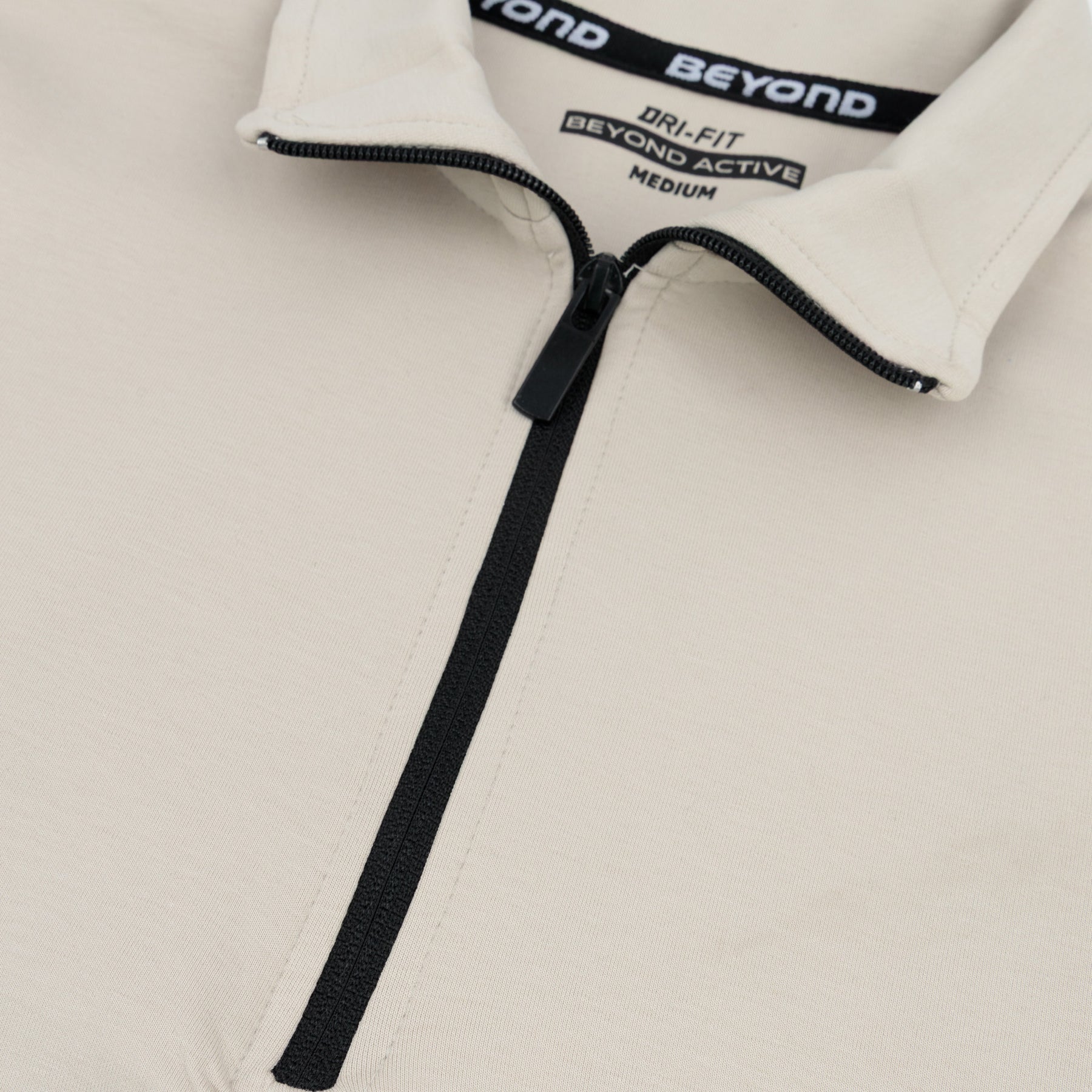 BEIGE MAT HALF ZIPPER MOCK NECK